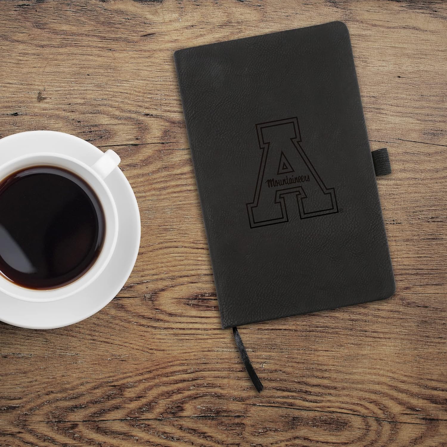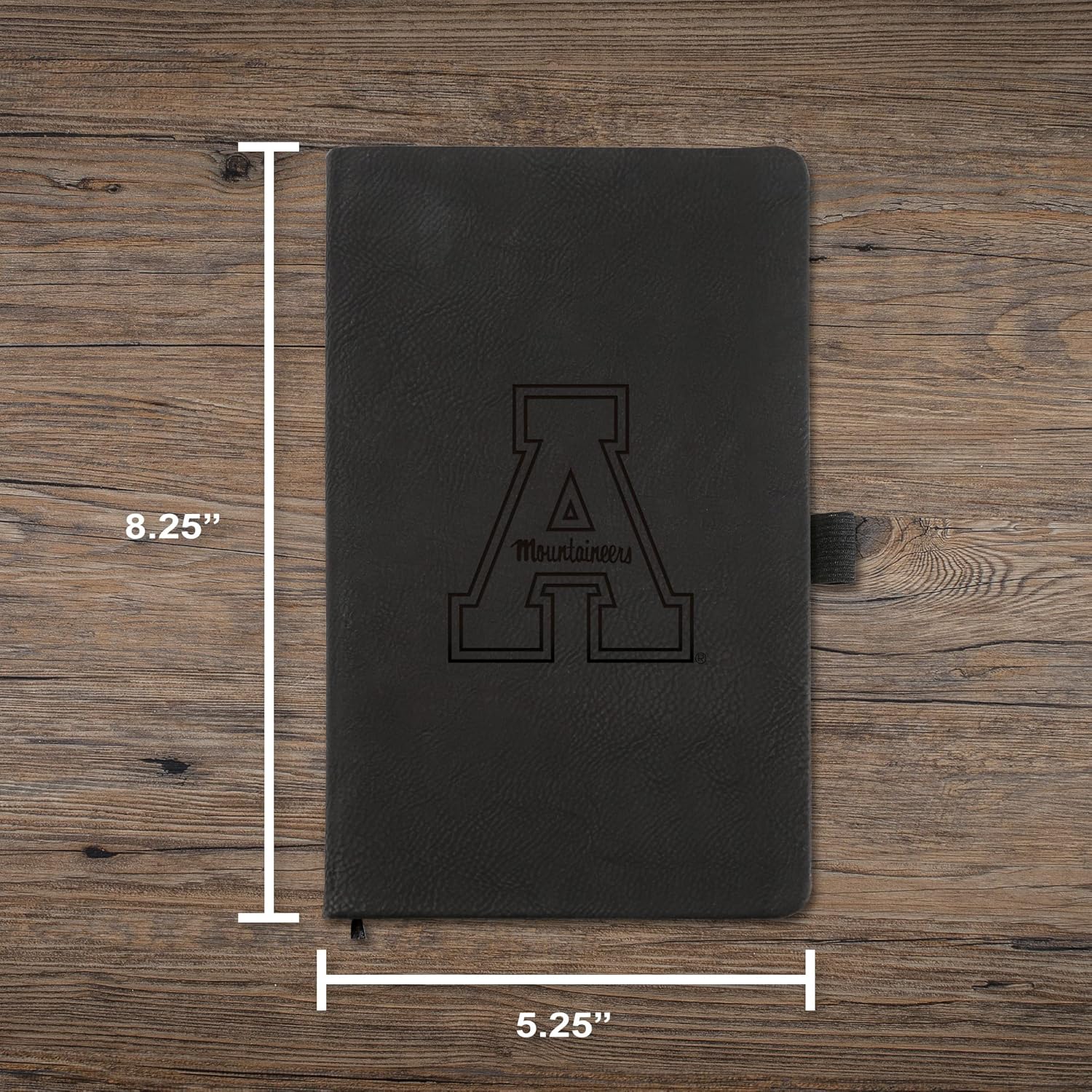 Appalachian State Mountaineers laser engraved notepad. Made of black faux leather. Great Gift Item: Guaranteed to be your most beloved possession as it boasts eye catching graphics and is inscribed with your favorite squad’s name and colors. Proudly display your favorite teams name and color. Measures 5" x 8" and contains 80 pages.