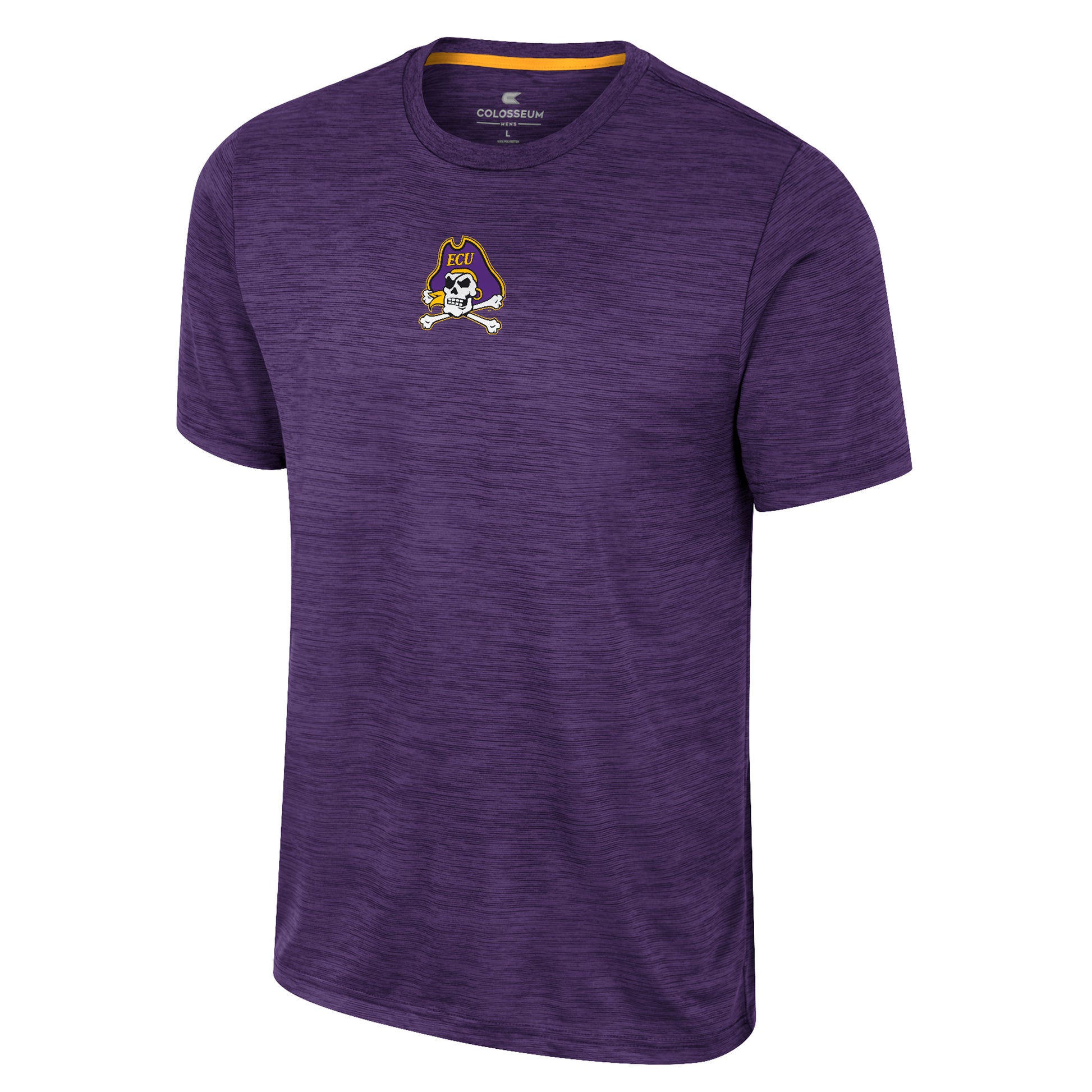 East Carolina Pirates men's Positraction short sleeve tee. Made of 100% Polyester. Team color with screen printed front and back graphics. Made by Colosseum Athletics