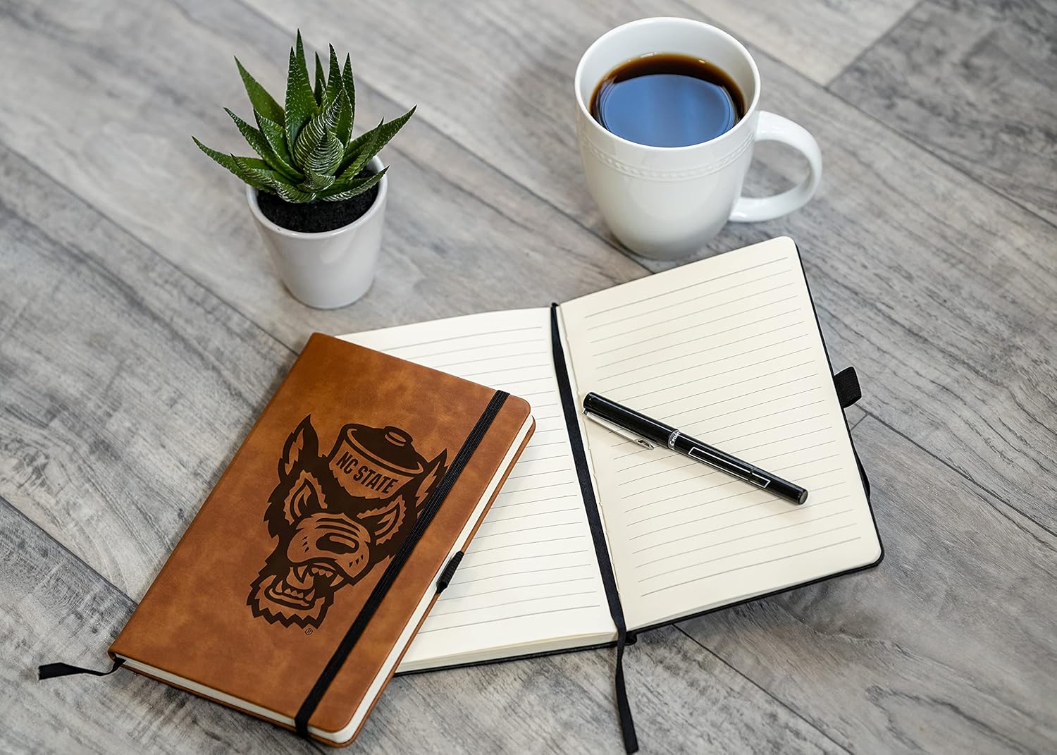North Carolina State Wolfpack laser engraved notepad. Made of brown faux leather. Great Gift Item: Guaranteed to be your most beloved possession as it boasts eye catching graphics and is inscribed with your favorite squad’s name and colors. Proudly display your favorite teams name and color. Measures 5" x 8" and contains 80 pages.