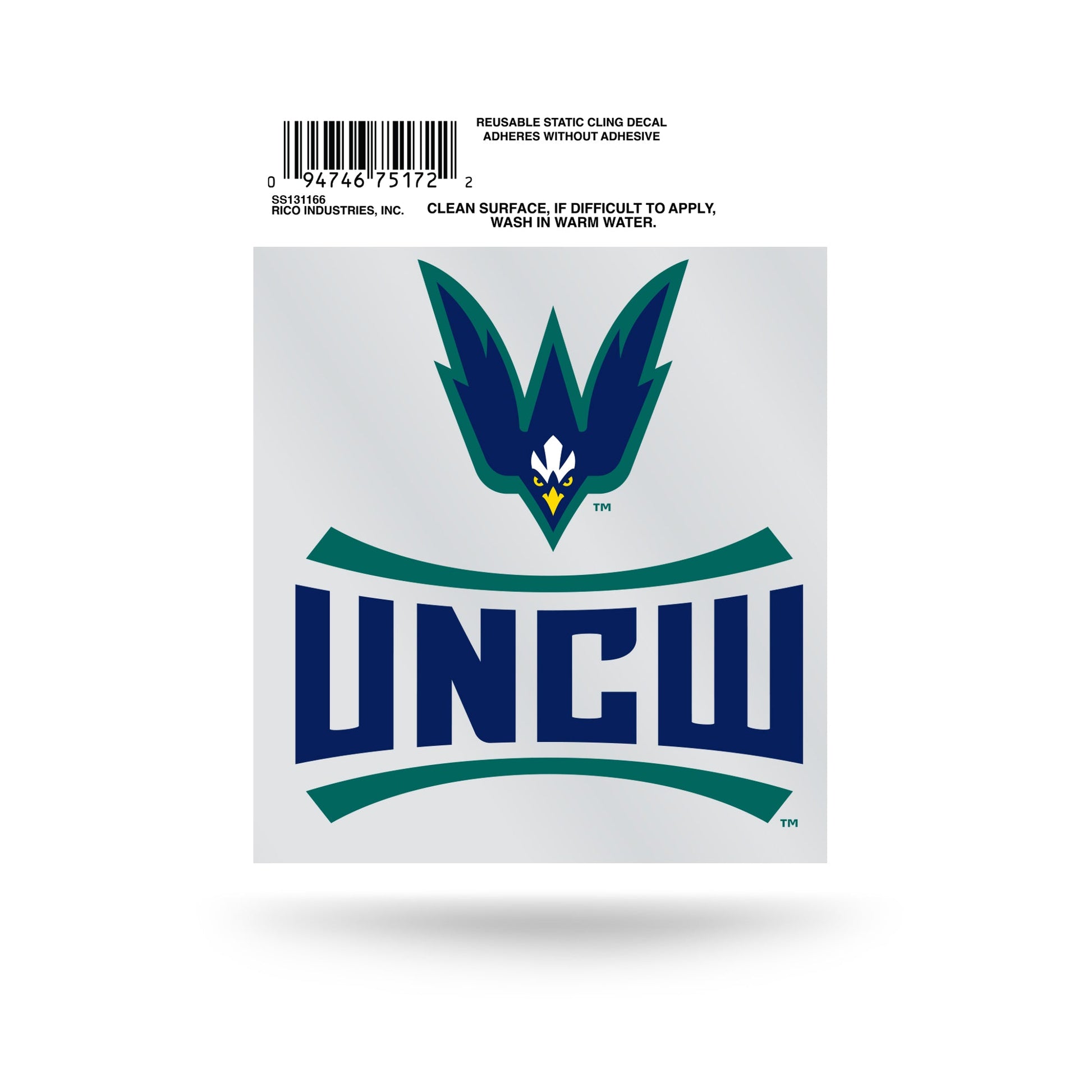 North Carolina Wilmington Seahawks reusable static cling. Adheres without adhesive. Approx. 3.5 inches in size.